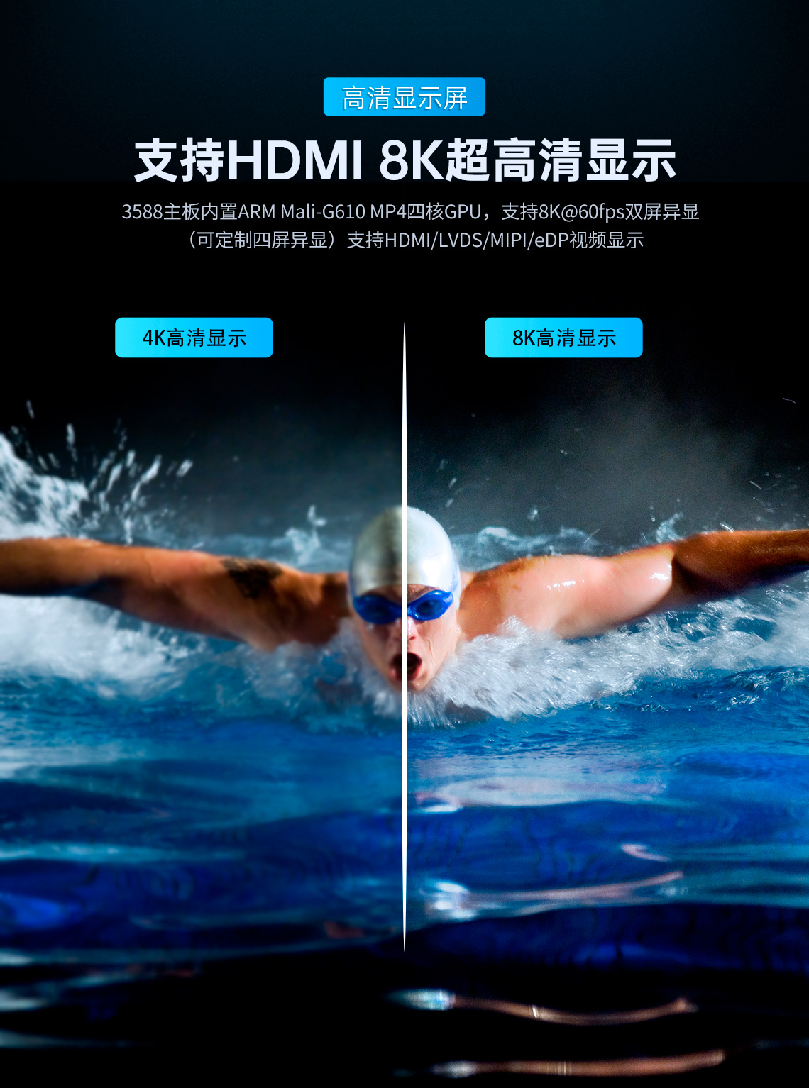 3588工控主板內置ARM-G610 MP4四核GPU,支持8K@60fps雙屏異顯