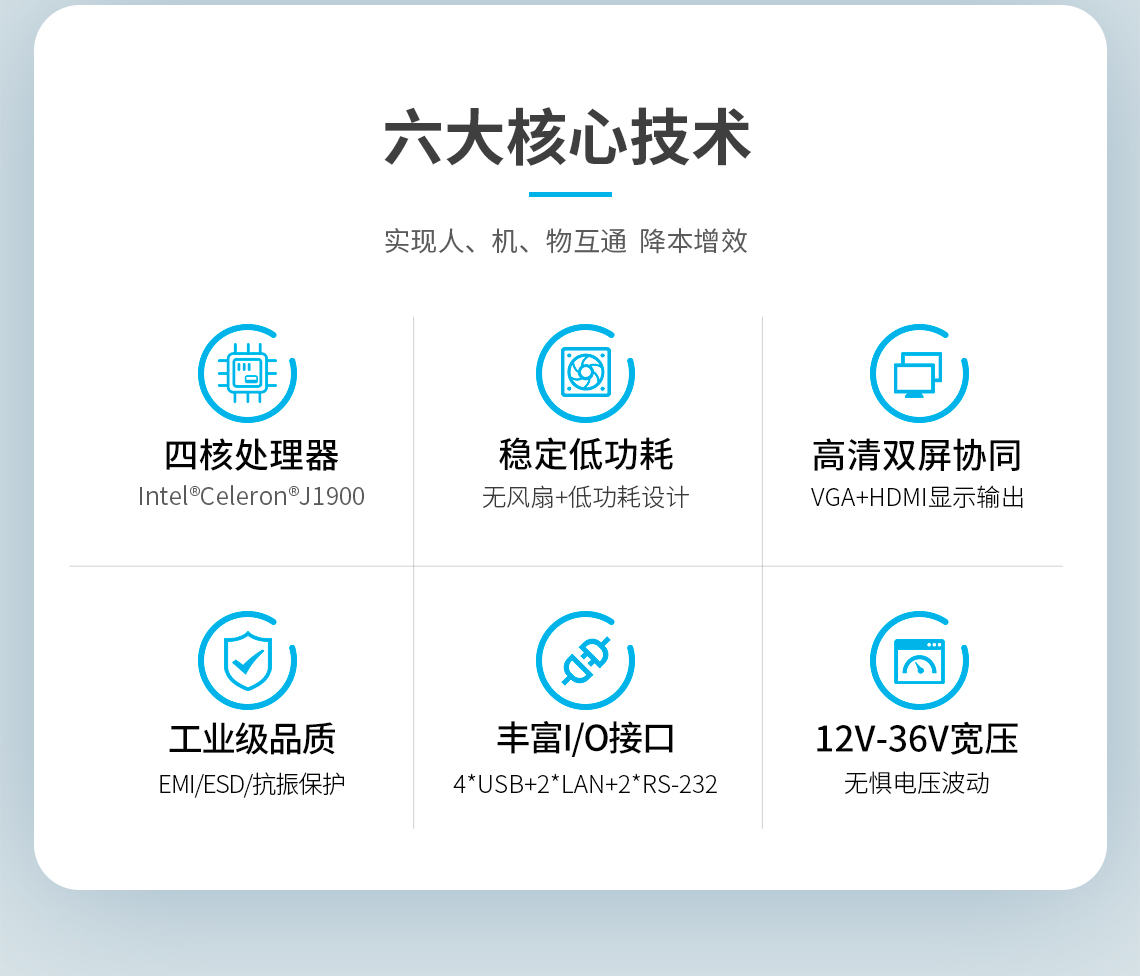 1.抗振防撞 2.EMC/EMI抗電磁干擾 3.工業(yè)主板 4.ESD靜電保護(hù) 5.寬壓輸入(DC 12V-36V) 6.耐高低溫